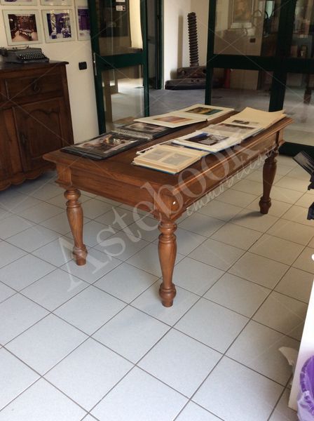 Tavolo Ottocento con quattro gambe tornite fascia sottopiano con ricavati [..]